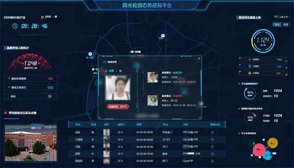 有别于传统的人工测温方式,该套智能测温识别设备还和现有保卫处的安保系统进行了联通,对进出学校人员信息实时记录,包括进出时间、进出地点、人员姓名、人员温度、联系方式等关键数据。[2]