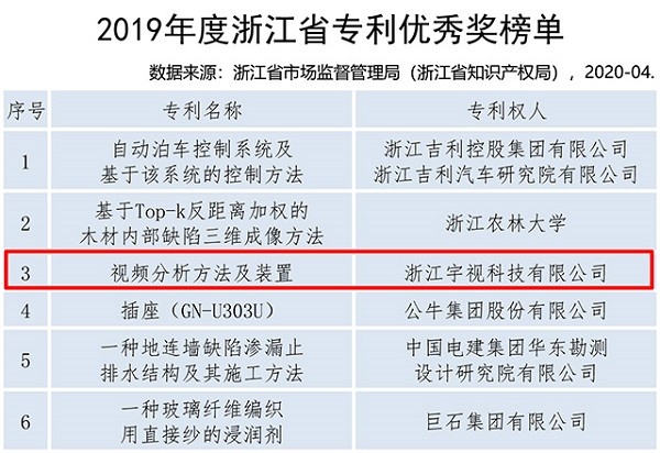 近日,浙江省市场监管局发布2019年度浙江省专利项目绩效评价(省专利奖)获奖榜单,榜单由各市市场监督局、国家知识产权示范园区、国家知识产权局、高校、科研院所、两院院士等推荐申报、自荐,经过多层审查、评议及现场答辩等程序,对申报专利从技术先进性、经济效益、管理保护水平等方面量化评价。其中,宇视科技(uniview)发明专利《视频分析方法及装置》获浙江省专利优秀奖,成为业内唯一上榜安防厂商。