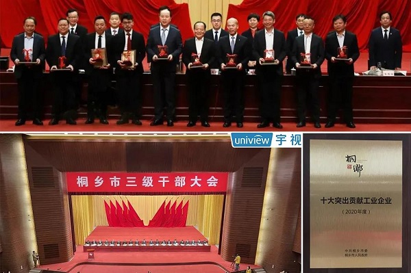 2月24日,桐乡市三级干部大会表彰奖励2020年度高质量发展先进集体和先进个人。宇视科技(uniview)凭借桐乡全球智能制造基地的高效敏捷、精工智造、战疫之年出色的社会贡献,获“2020年度十大突出贡献工业企业”“2020年度外贸出口优秀企业”,宇视总裁张鹏国获评“2020年度十大工业企业优秀经营者”。