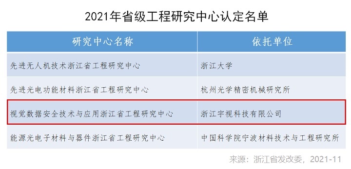 近日,浙江省发展和改革委员会正式发布2021年省级工程研究中心名单,重点关注领域战略性新兴产业、高新技术产业和未来产业,对建设必要性、申报单位综合实力和研发实力具有严格要求。宇视科技(uniview)创建的“视觉数据安全技术与应用浙江省工程研究中心”以行业技术领先性和研究开发实力获得认可,与浙江大学、中国科学院宁波材料技术与工程研究所等共同入选,成为滨江区唯一新上榜电子信息类企业。