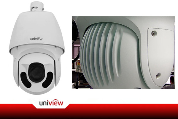 该款球机采用了宇视经典的U字型“笑脸”外形设计,整机以白色色调为主,简洁大气。球体整体采用防水透气设计,支持IP66防护,适应各种恶劣环境下的使用。在球机后方采用了独特的翅式散热设计,可以很大程度增加球机在高温下的散热,确保球机运行正常。另外,该球机支持垂直方向-15度的仰角设计,有效增加监控视角。