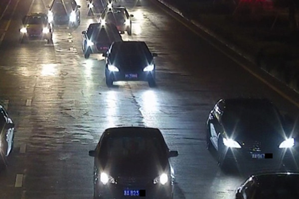 3)夜晚强光抑制测试将该球机对准车道,开启强光抑制,路口车辆大灯的强光抑制效果明显,可以清晰的读取到道路中车辆的车牌信息。