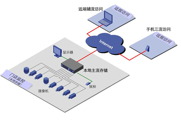 以一个实际项目运用为例,在远端的多个分控中心客户端上,用户可以对一个画面进行主辅流选取访问,采用辅流访问可以兼顾画质和带宽,增加并发访问路数。同时用户可以配置主流存储,使得保存在NVR上