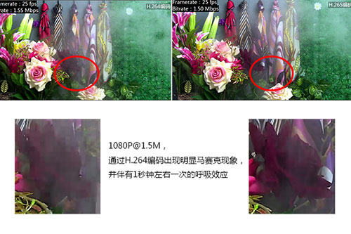 H.265/HEVC通过对图像有重点的编码、33种帧内预测模式,以及更好的运动补偿处理和矢量预测方法,能够将码流压缩率提升近50%。1080P的图像仅采用1.5M的码流就可以保障清晰的效果。