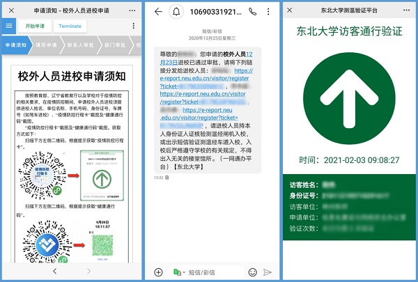 校外人员提前在线上录入身份信息,经校方审批后方可通行,审批后可获得预约时段的通行链接,出示链接或刷身份证即可进入,工作人员防控通行的效率大大提升。