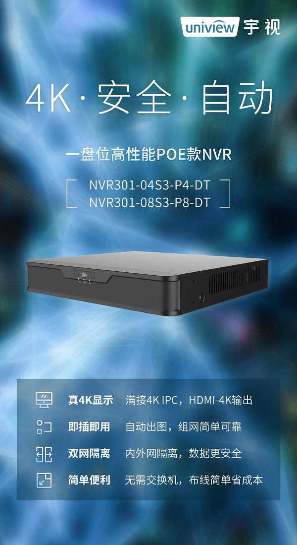 新品 | 宇视一盘位高性能POE款NVR:4K·安全·自动