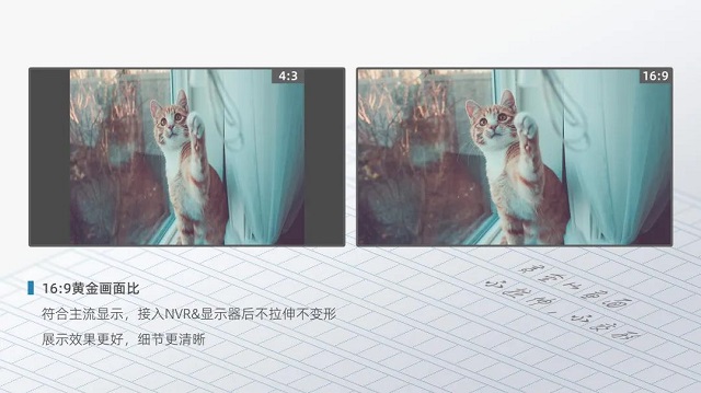 根据人体工程学研究发现,人眼的清晰视野范围是一个长宽比例为16:9的长方形。双光警戒系列IPC全系支持16:9黄金比例,更适配目前主流的NVR及显示设备,画面不拉伸不变形,细节效果双加成。