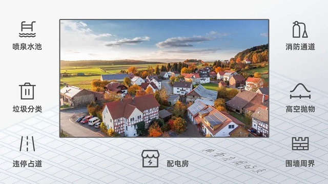 双光警戒系列IPC应用于小区,可实现喷泉水池、垃圾分类、违停占道、消防通道、高空抛物、配电房、围墙周界等多个细分场景的守护,主动防范,保护小区人员/财产/环境,降低人力成本,减少资源浪费。