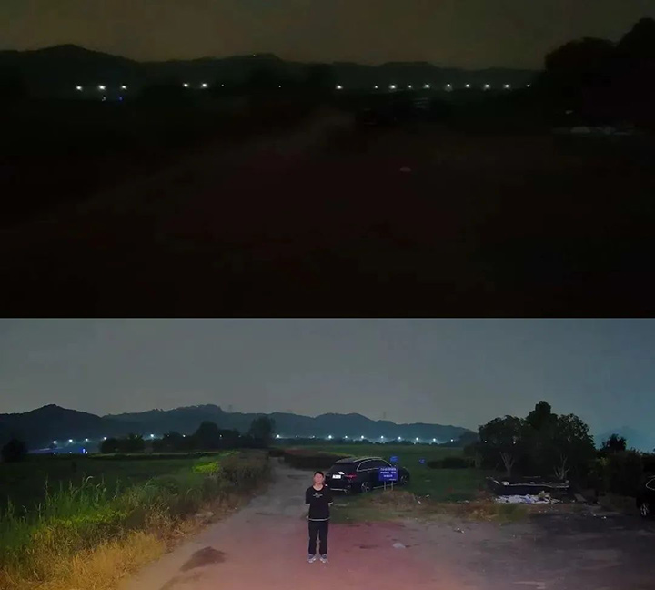 图 夜间手机拍摄与双摄球机智能补光成像对比图