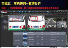 该平台可通过时间、地点、车身颜色、车型等一系列数据的分析,判断车辆是否为套牌车。例如车牌为冀HTXX 的出租车在间隔很短的时间内,分别被开发区管委会由东向西方向、交警支队由北向南方向的非现场执法设备抓拍,由于时间间隔很短,同一车牌的车辆不可能出现在物理位置较远两个地点,通过图片放大,发现该车辆有差别。则可判定为套牌车辆。