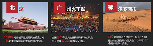 ◆ 在北京建设视频解析中心,支持10PB级海量视频数据的快速检索,可对160 路重点视频或者录像提取人、车、非机动车的结构化/ 半结构化信息,同时结合UniSpark 大数据系统,实现人、车、非机动车的秒级查询和检索;