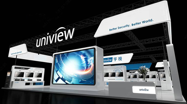 图:宇视2018安博会展台效果图,全新宇视蓝的U形VI风格