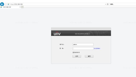 1、浏览器输入摄像机IP地址、用户名admin和密码,登录摄像机WEB网页界面。