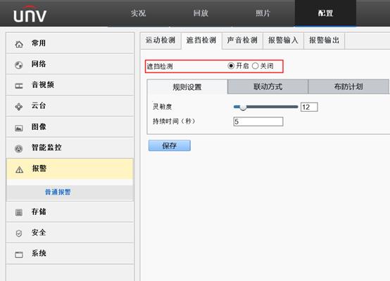 1、遮挡检测配置路径:在配置—报警—普通报警—遮挡检测