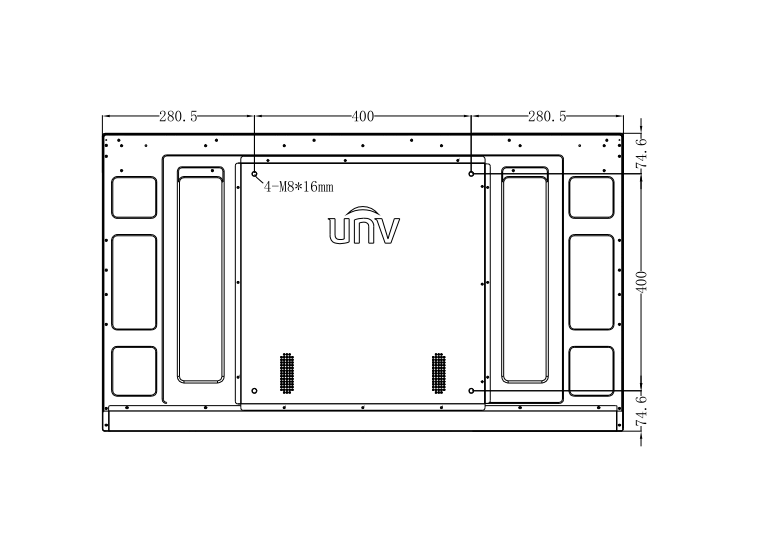 超窄边框,四等边设计,支持横竖安装。