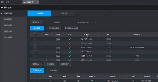 路径:录像机【主菜单】-【摄像头】-【远程设备】,查看状态提示(不同版本的配置路径有差别,以录像机实际界面显示为主)。