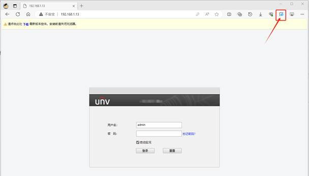 不支持Edge浏览器的相机,打开web页面 点击右上角IE模式按钮