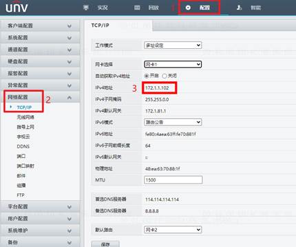 网页界面:“配置—>网络配置—>TCP/IP”