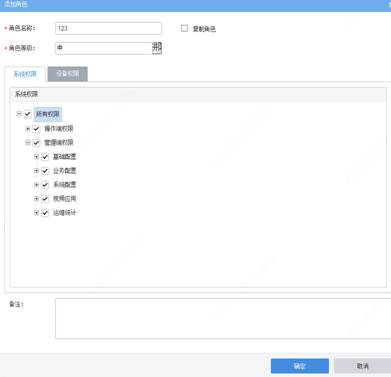 设备权限界面按下图配置,主要要在客户端展示权限右侧选择你自定义组织的名称,配置完毕点击“确定”按钮。