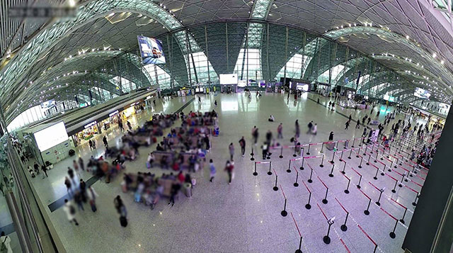在航站楼出发/到达大厅,通过全景智慧监控系统,实现全域视频实时感知、大客流监测预警、全场景智能行为分析等。