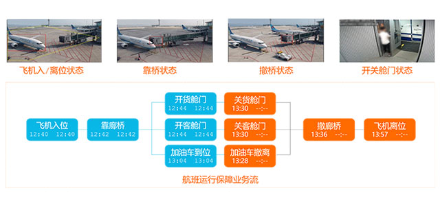 航班保障节点智能识别,自动记录和上传关键时间点,实现保障节点的精细化管理,降低数据沉淀、过程监控的成本投入。